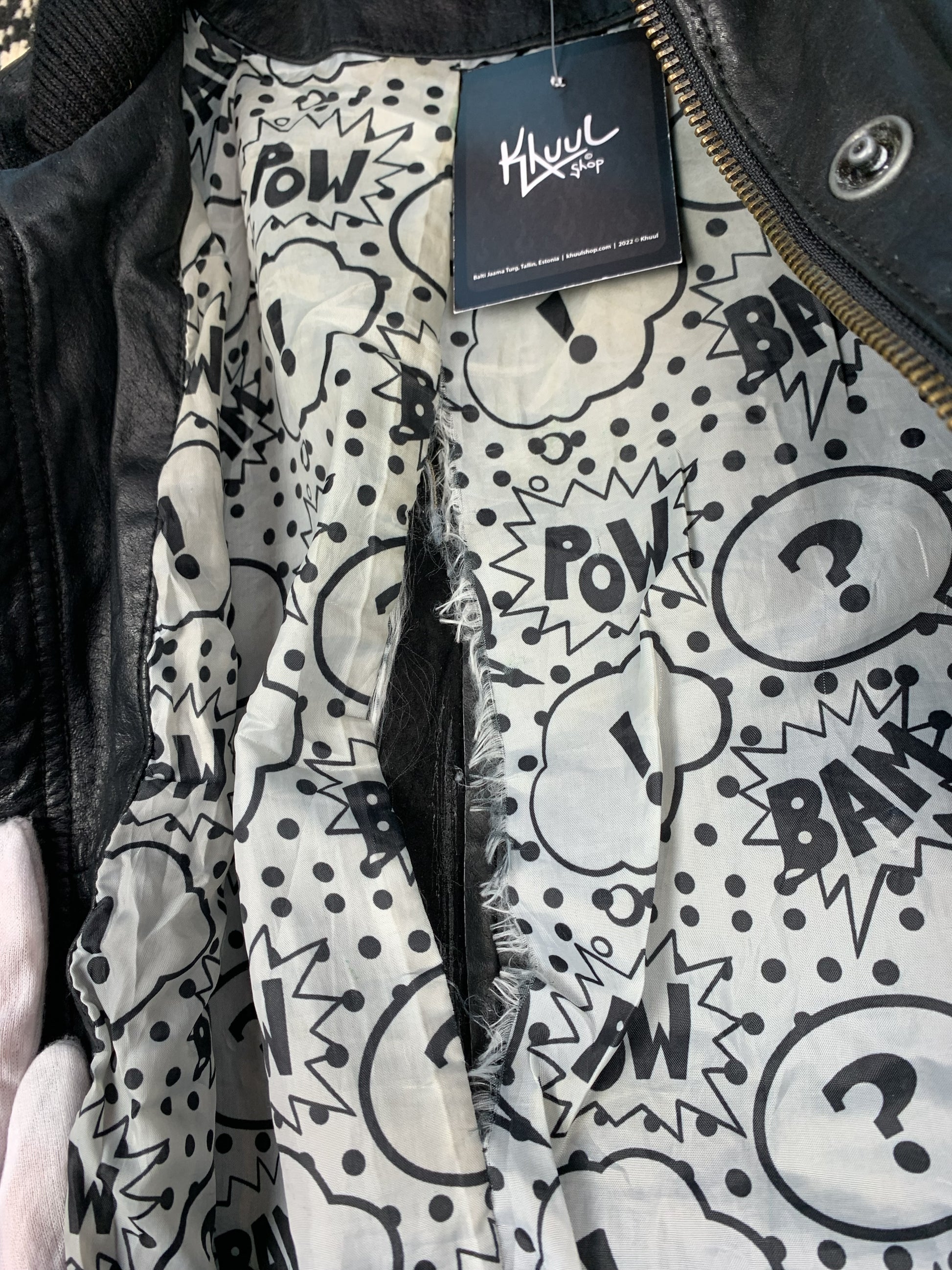 Unisex Y2K Black Faux Leather Bomber Jacket with Graphic Lining – Size Unisex XL