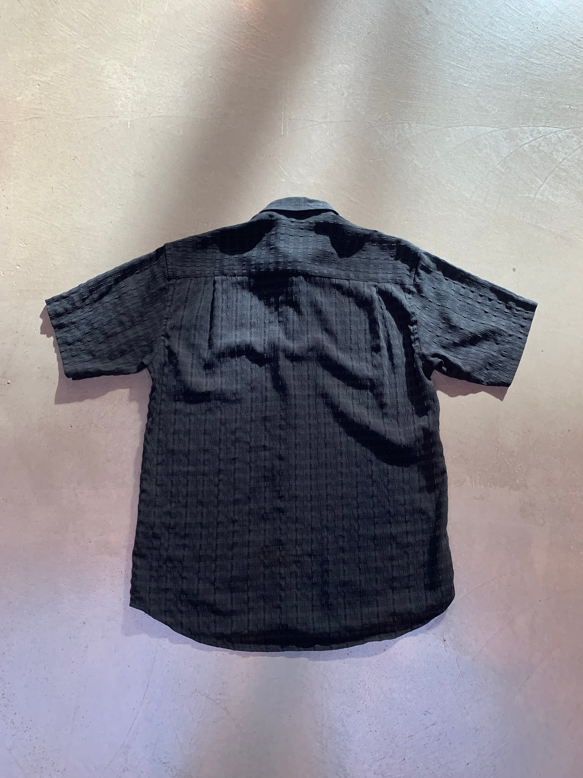 Versace Classic Black Short Sleeve Button-Up Textured Shirt Men's L
