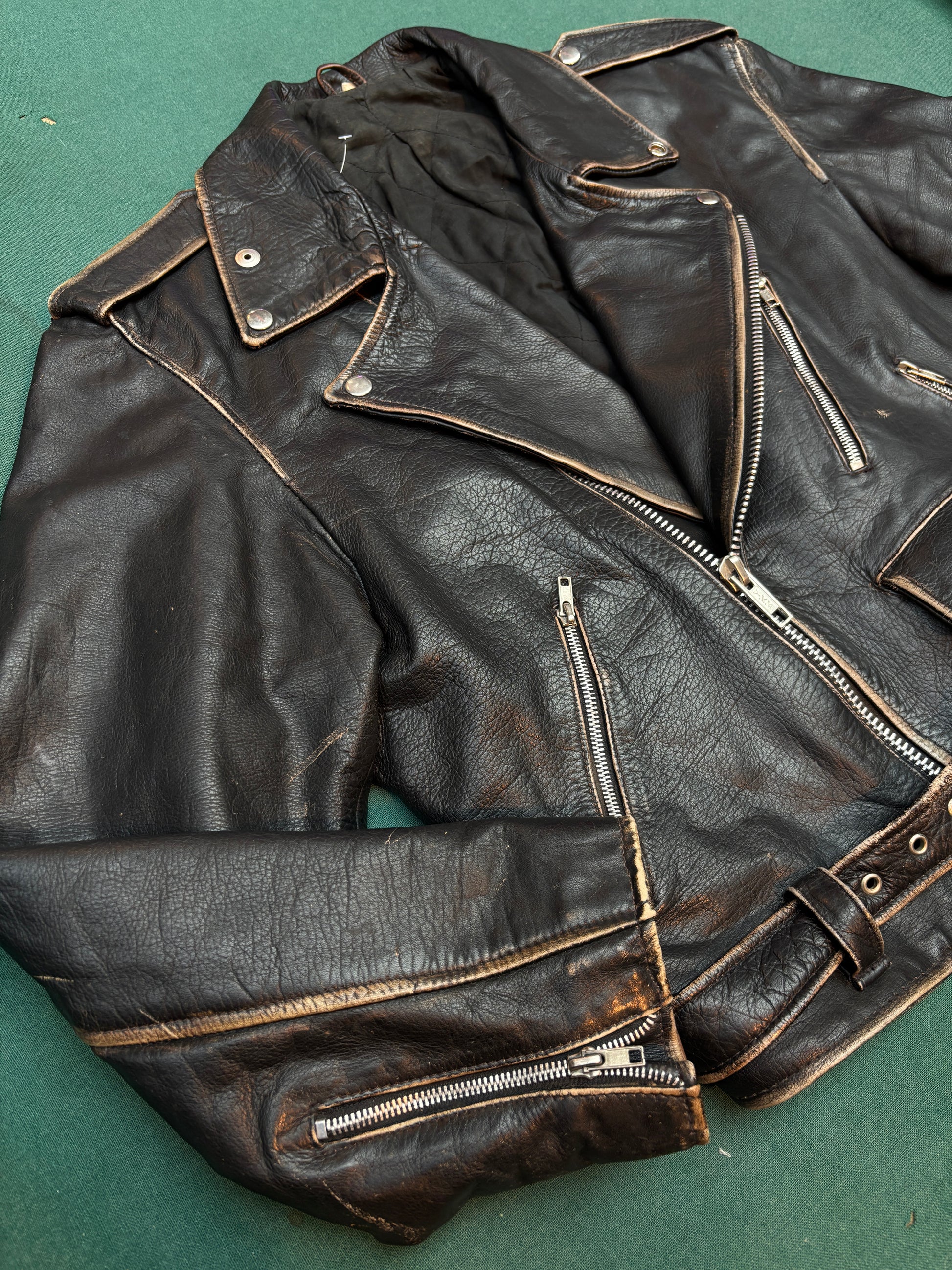 Vintage Black Leather Biker Jacket with Belt and Zipper Details Real Leather Punk Rock Style