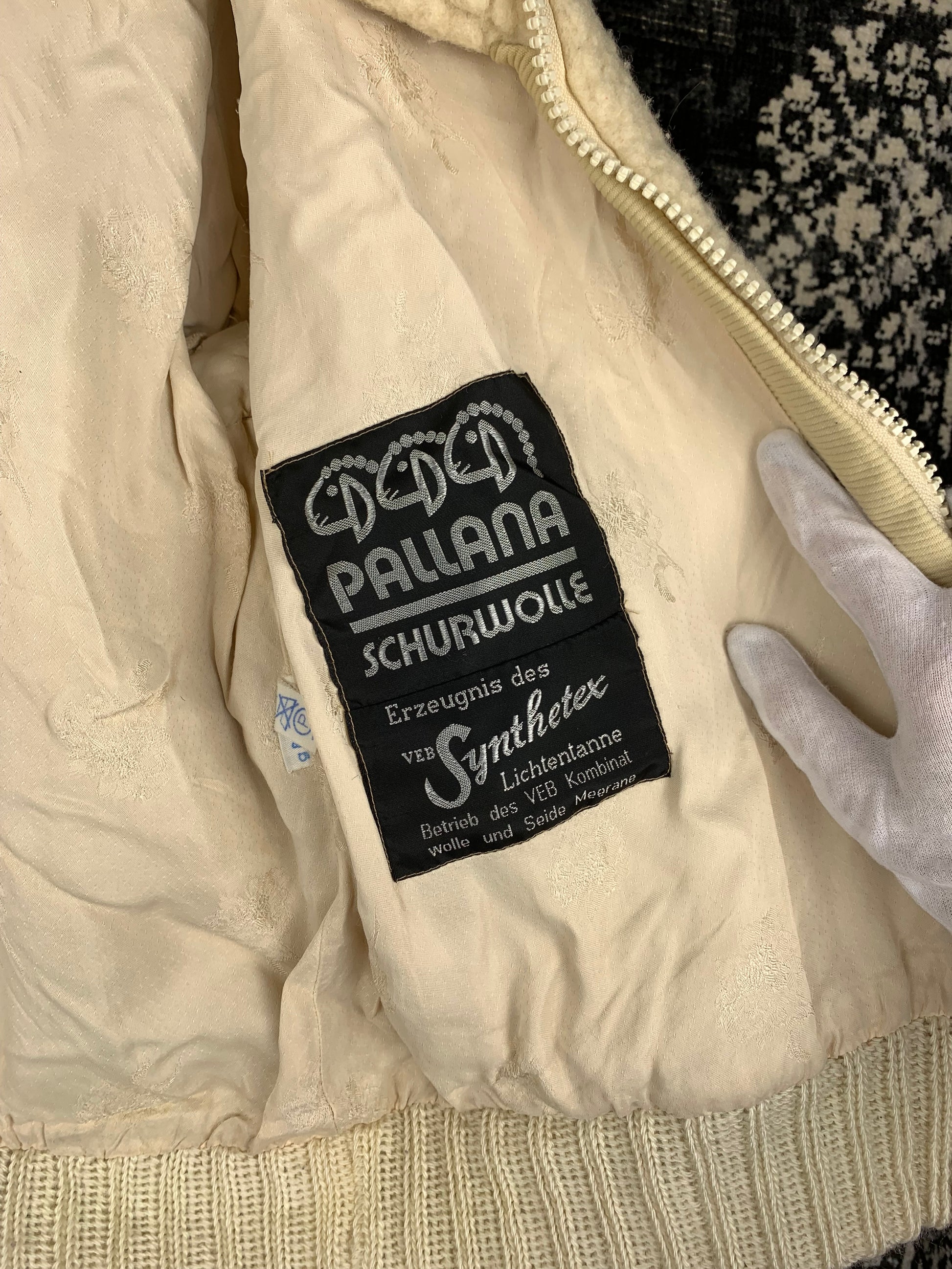 Women's Beige Lamb Wool Zip Jacket by Pallana - Vintage Asymmetrical Full Zip Fleece Outerwear in Soft Cream Sherpa with High Collar