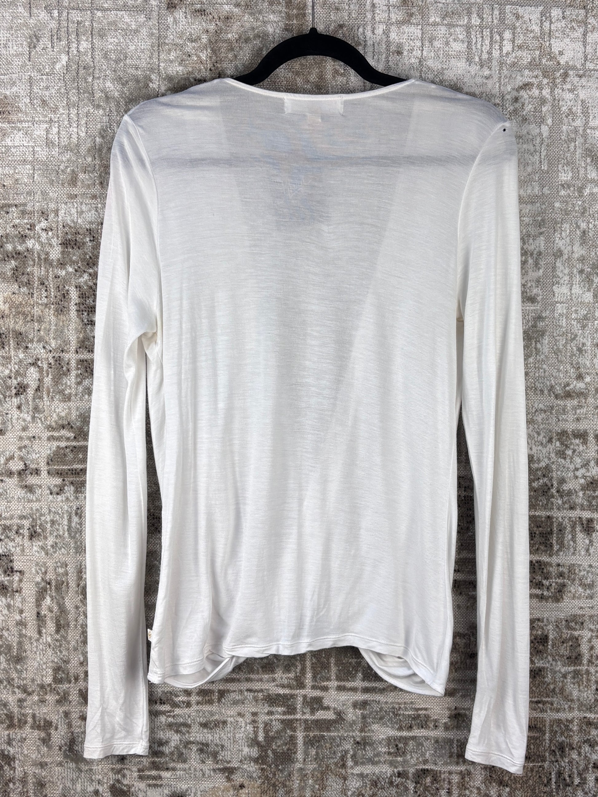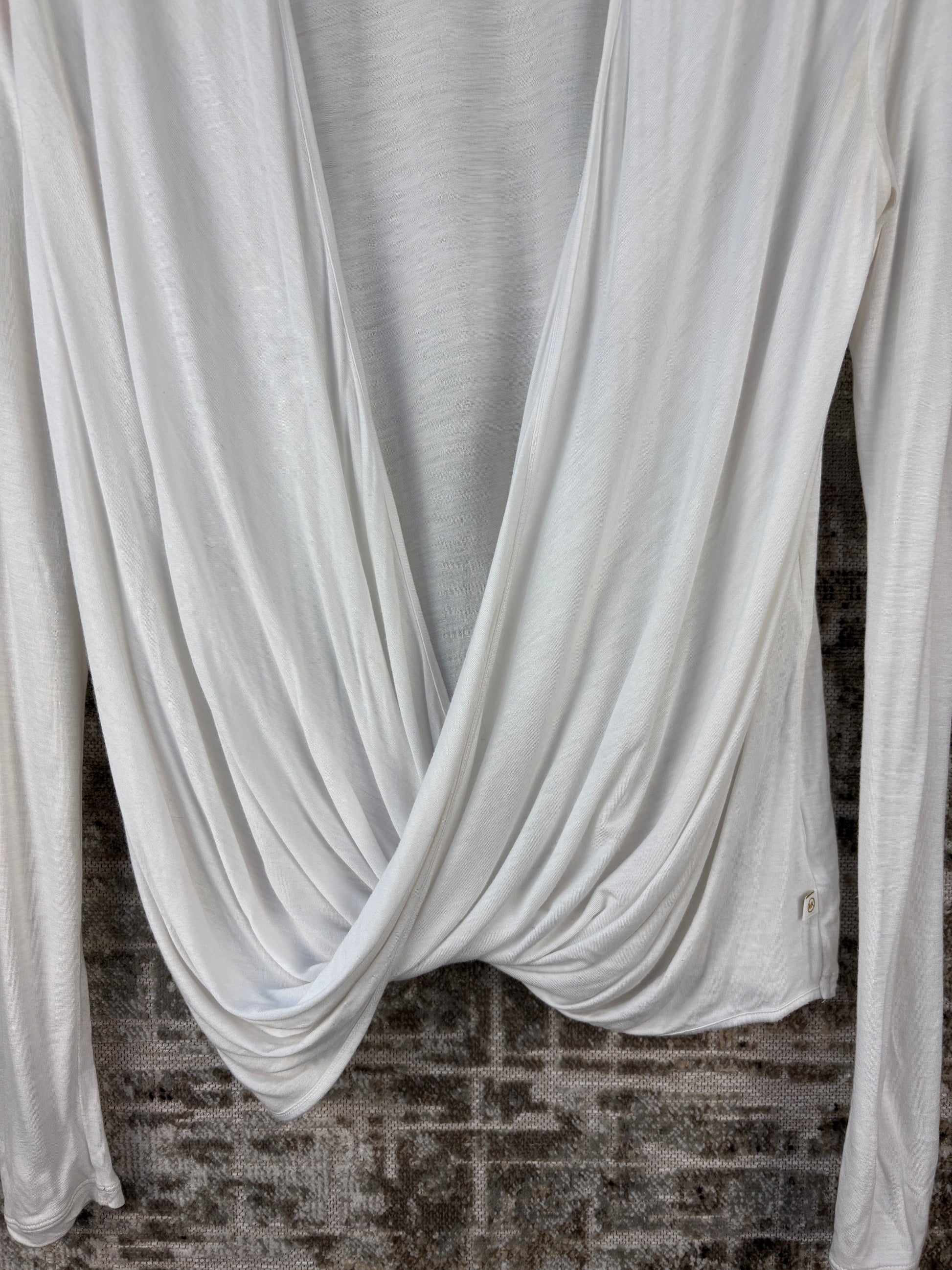 Women’s Michael Kors White Open Chest Top Long Sleeve Designer Minimal Stretch Lightweight Elegant Casual Blouse