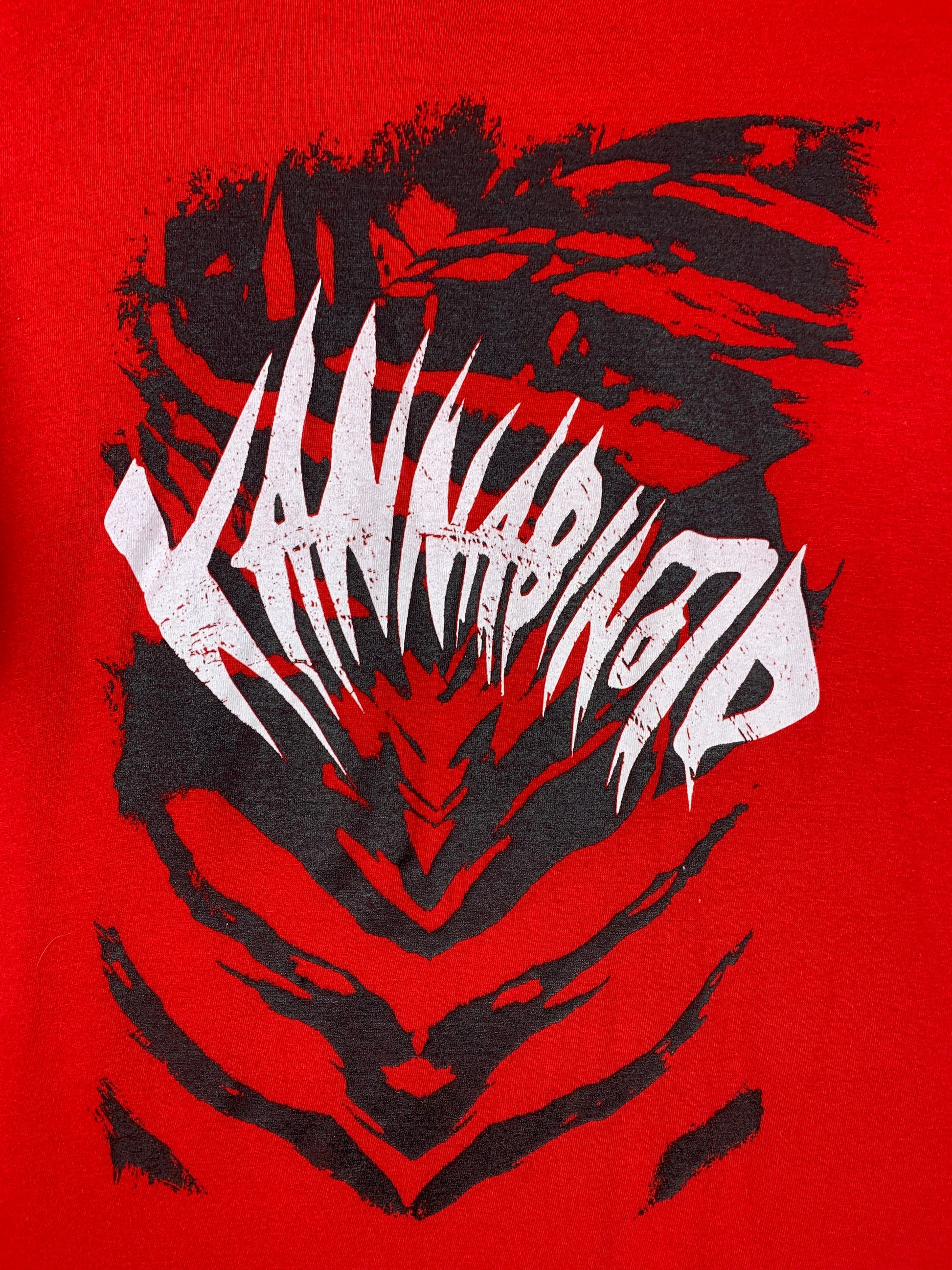 Kannabinõid Graphic Red Band T-Shirt with Bold Metalcore Print – Heavy Music Tee in Streetwear Style – XL Fit