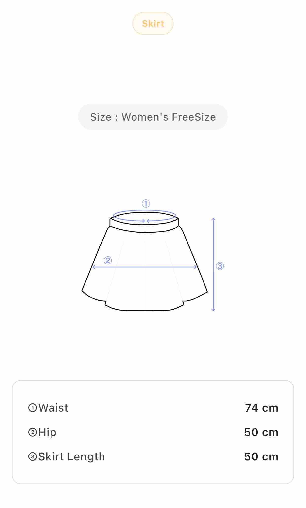 • Size: Women’s M (Waist 74 cm, Hip 50 cm, Skirt Length 50 cm)