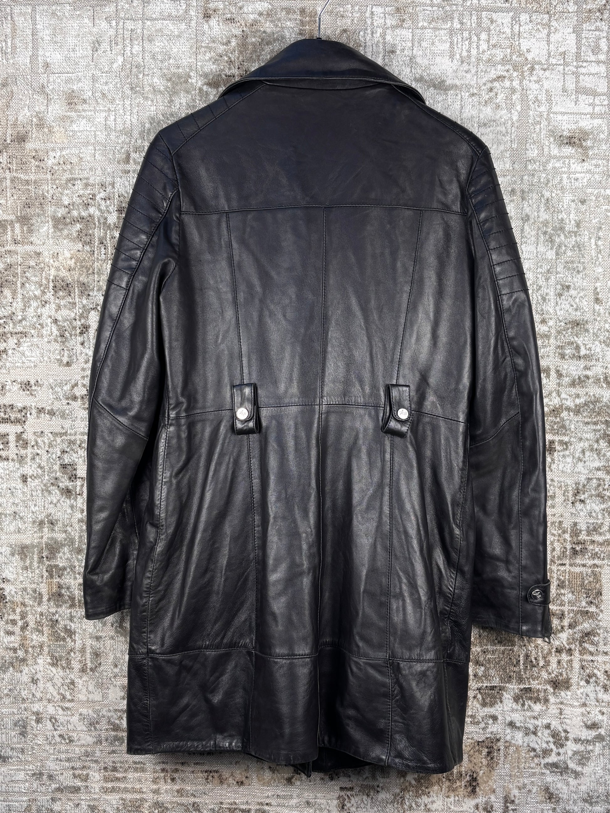 Womens Vintage Black Genuine Leather Coat Long Biker Style Zip Up Jacket Retro Classic Minimal Streetwear Leather Overcoat