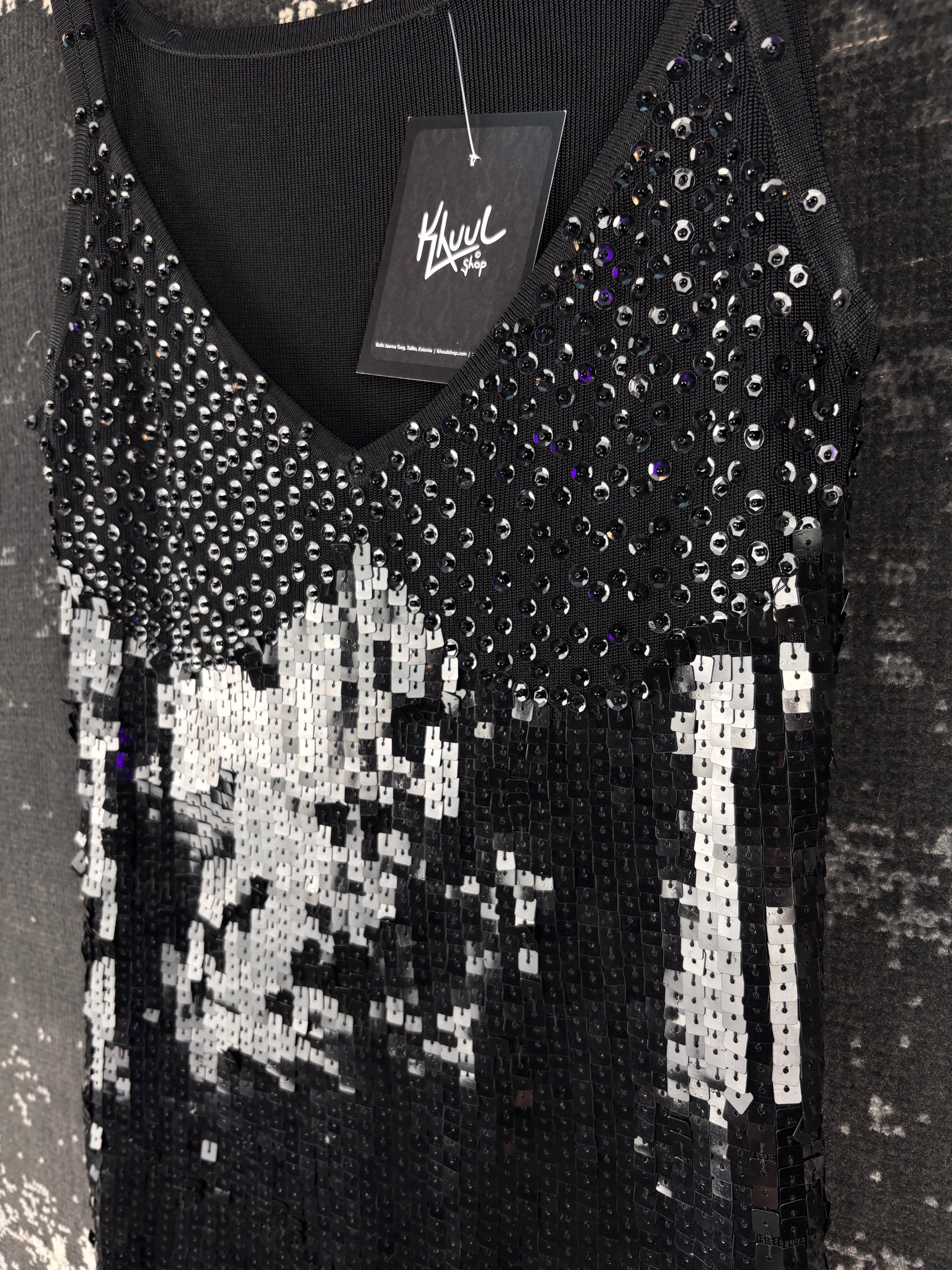 Womens Y2K Black Beaded Tank Top - Sequin Embellished Camisole Party Clubwear Retro 2000s Sparkly Sleeveless Top XS