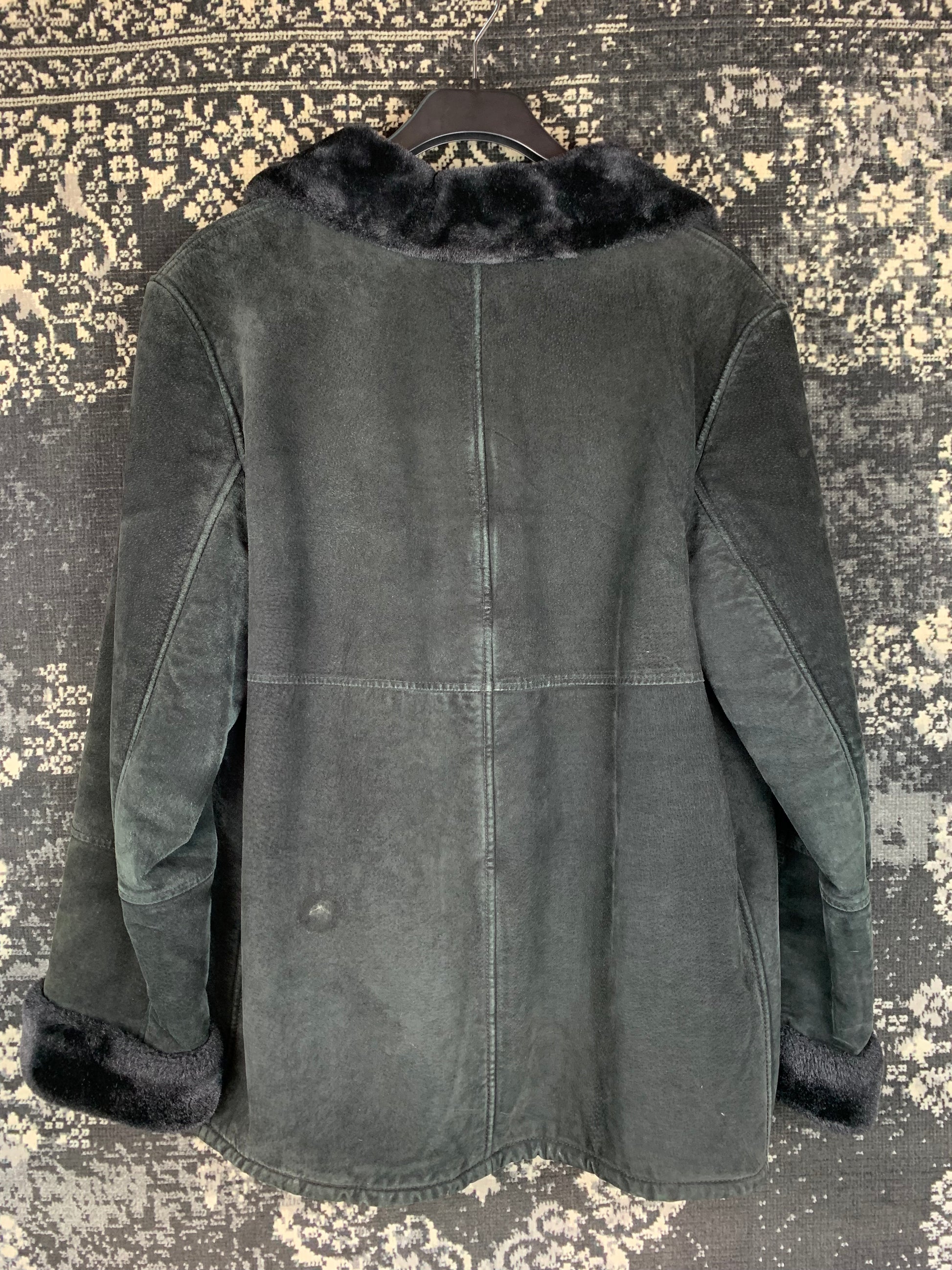 Y2K Women's Black Faux Suede Winter Jacket - Short Button-Up Coat with Plush Faux Fur Collar and Cuffs - Cozy Retro Streetwear - Size M - 2000s Vintage Aesthetic