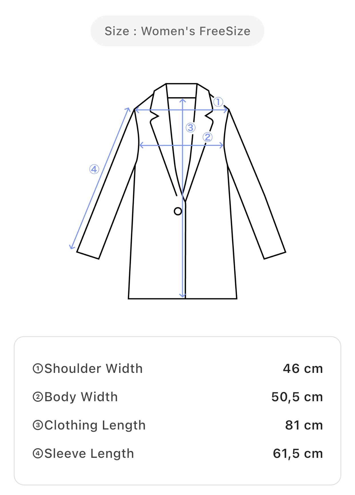• Size: Women's L – Shoulder Width 46 cm, Body Width 50.5 cm, Clothing Length 81 cm, Sleeve Length 61.5 cm