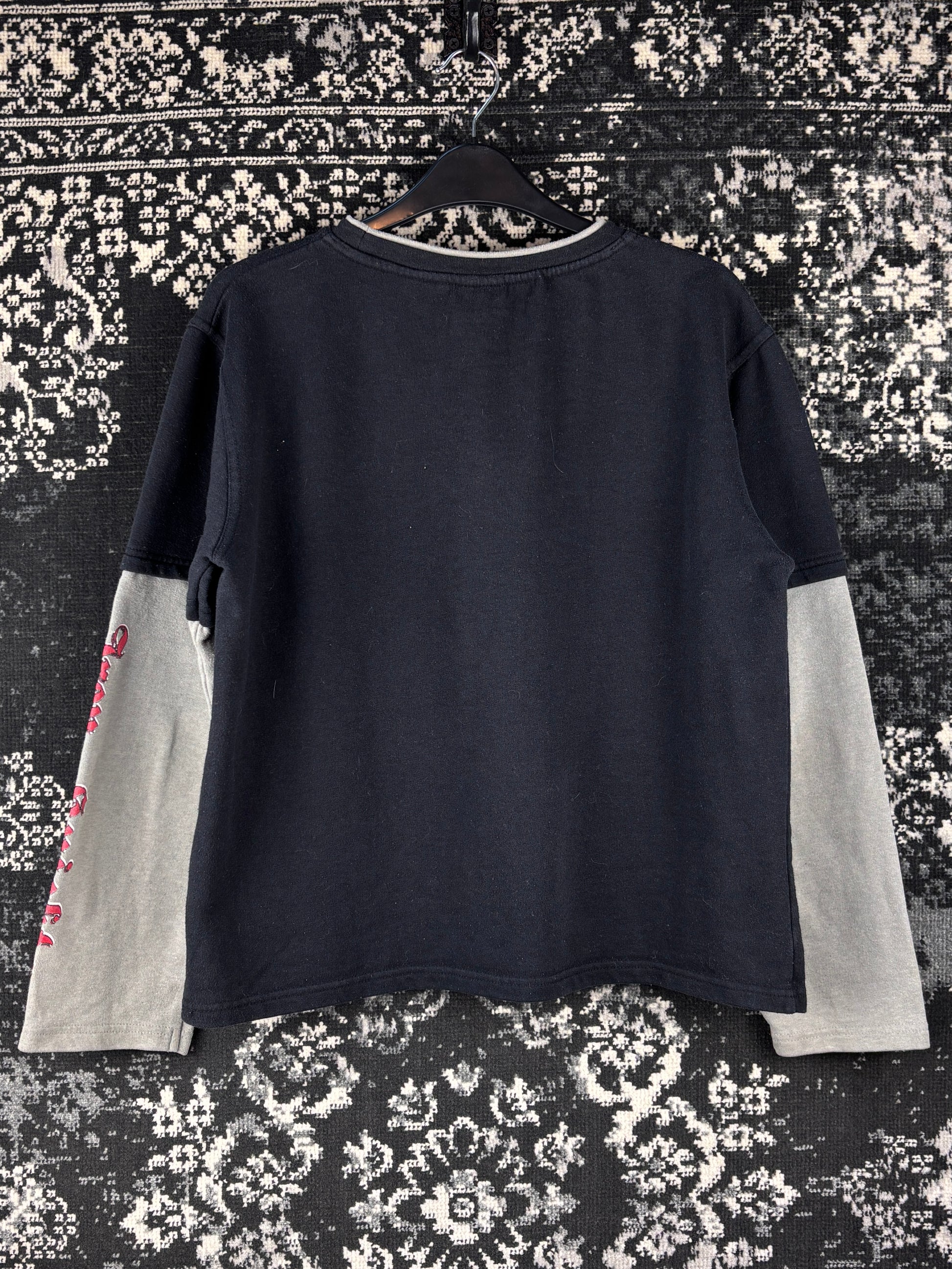 Womens Y2K Iron Knights Graphic Dark Long Sleeve Shirt - Layered Look Gothic Skull Print Top Size L
