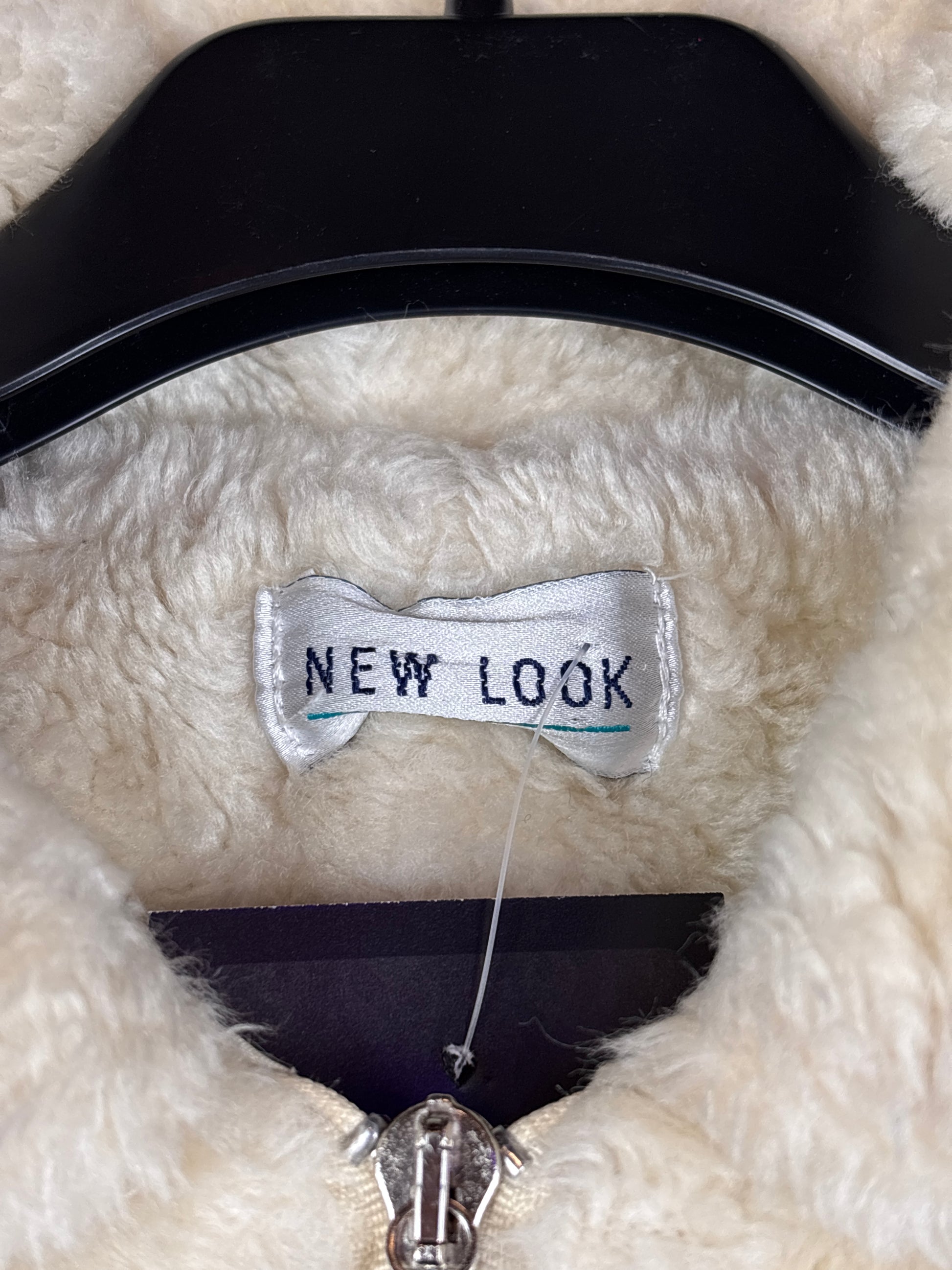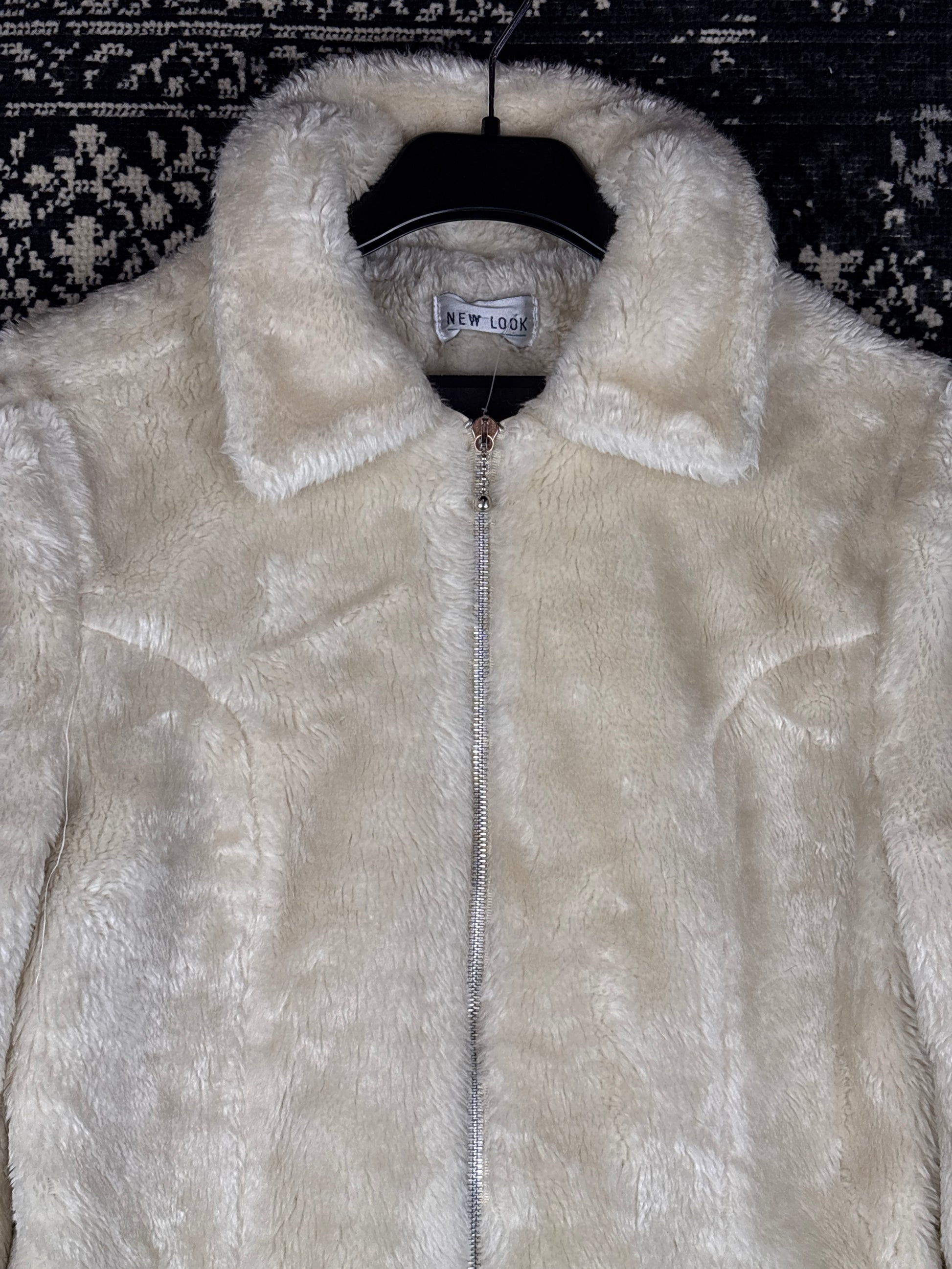 Y2K Women's Cream Faux Fur Jacket by New Look with Zip Front, Soft Plush Texture, Collared Neckline & Retro Winter Streetwear Vibe