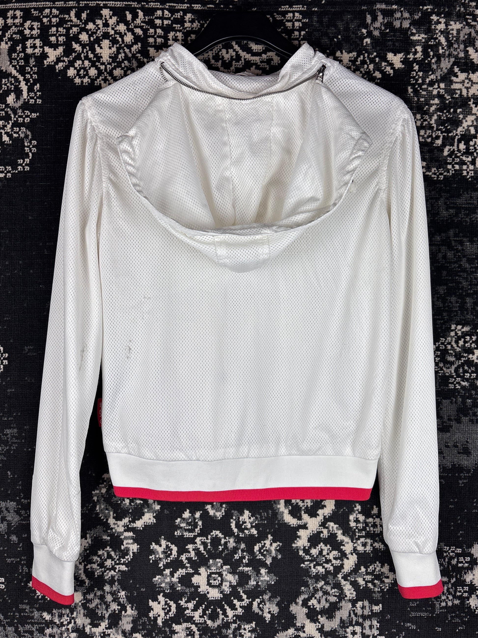 Women's Y2K SPEX White Mesh Zip Hoodie with Snap Buttons and Pink Trim