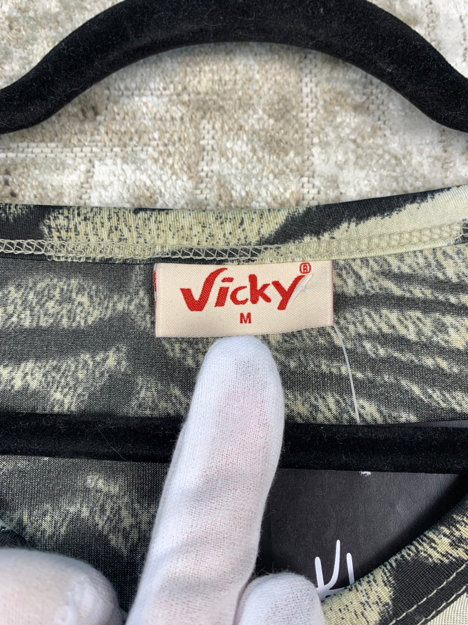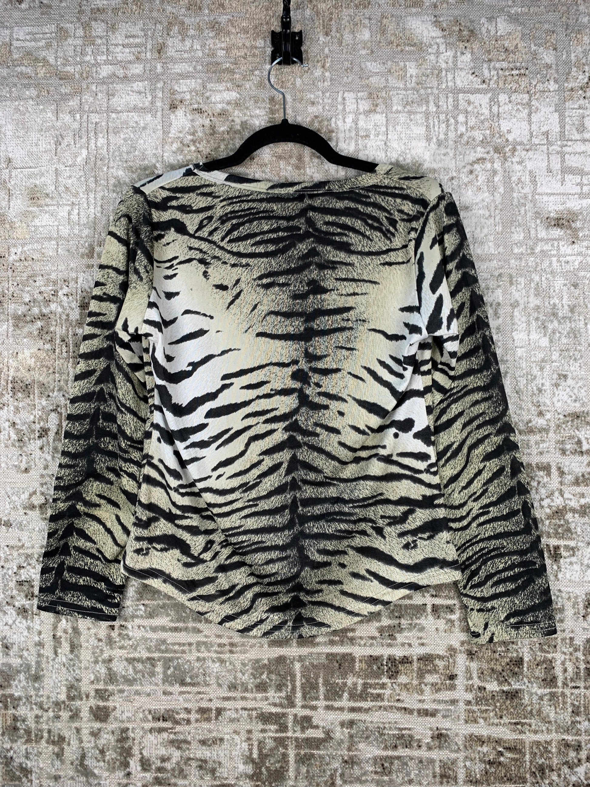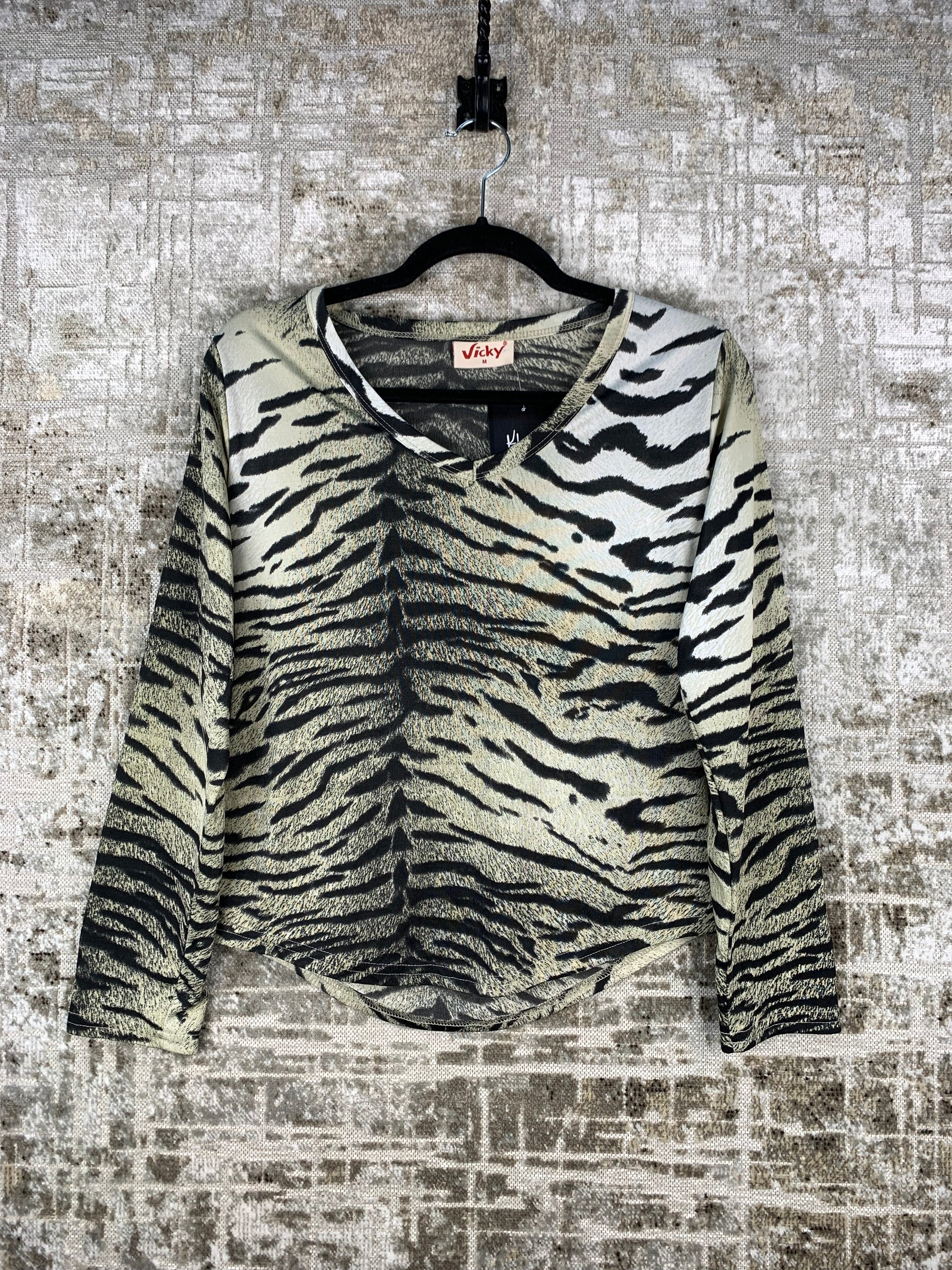 Womens Y2K Vicky Zebra Print Long Sleeve Top Animal Print Stretch Shirt Vintage 2000s Fitted Casual Streetwear Trendy Size M
