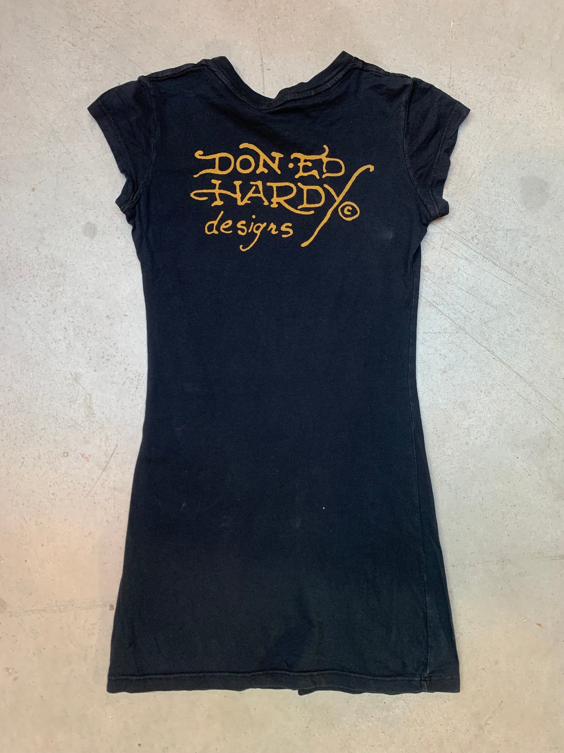 Y2K Women's Ed Hardy Black Tiger Print Rhinestone T-Shirt